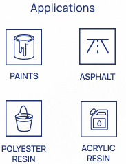 High purity aromatic solvent. It is added to fuels as an anti-knock agent and used as a diluent for paints, coatings, rubbers, and resins. One of the main characteristics of this product is its rapid evaporation, combined with high solvency power.