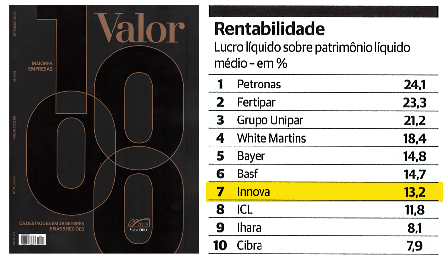 Ranking Valor 1000: Innova entre as 10 Maiores Empresas do Setor em Rentabilidade. 18 de setembro de 2025