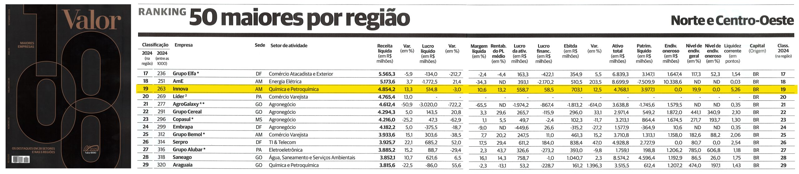 Ranking Valor 1000: Innova entre as 20 Maiores Empresas das Regiões Norte e Centro-Oeste. 18 de setembro de 2025