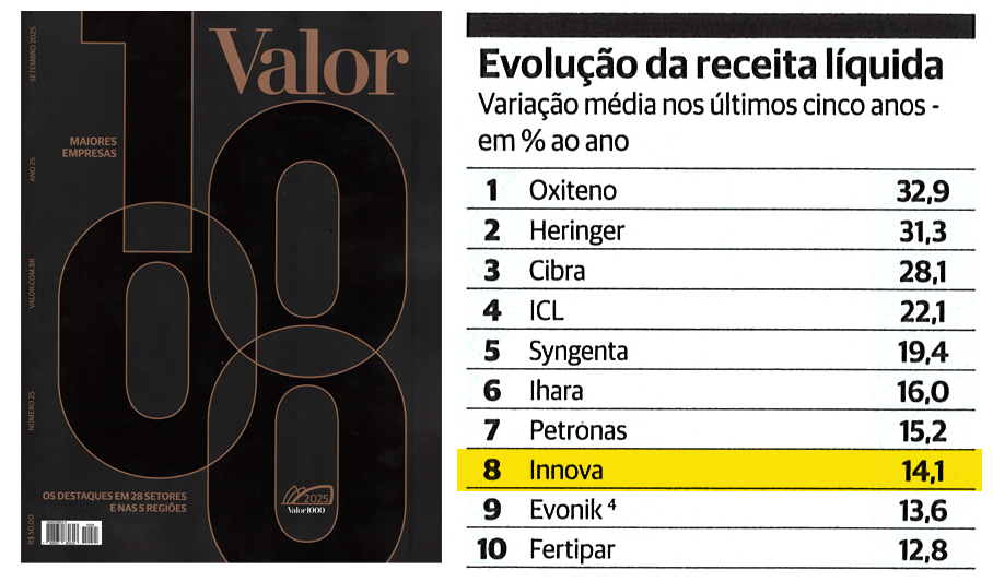 Ranking Valor 1000: Innova entre as Maiores do Setor em Evolução da Receita Líquida. 18 de setembro de 2025