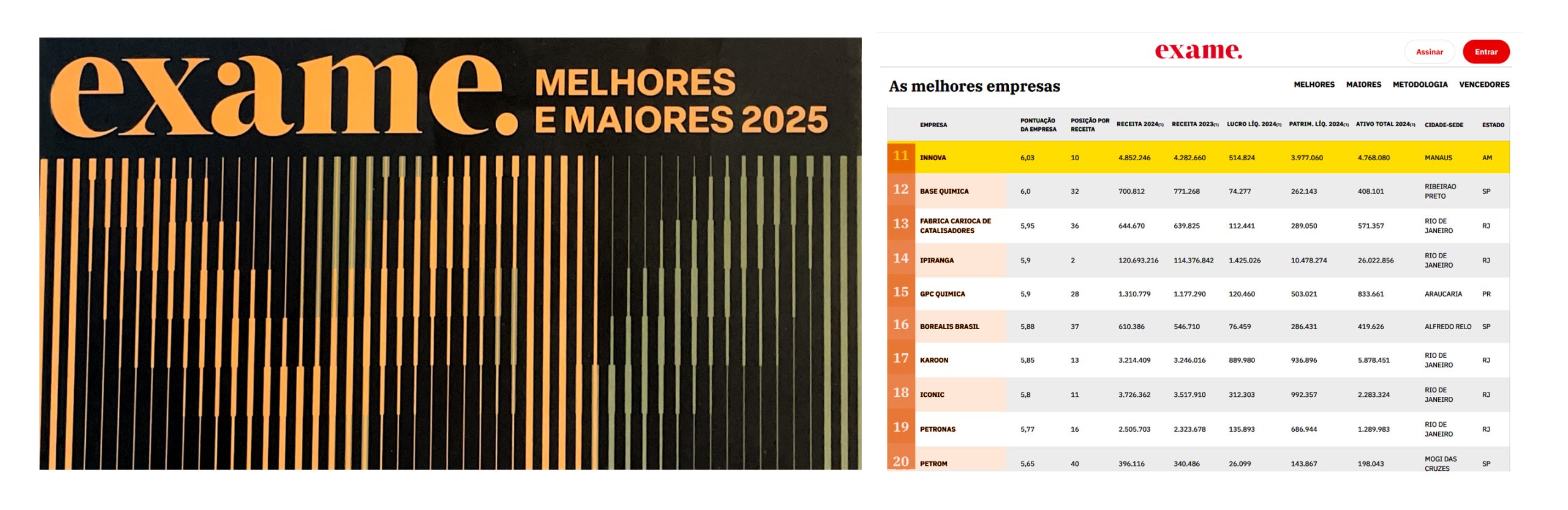 Ranking Exame, Melhores & Maiores: Innova entre as Melhores Empresas do Setor País. 29 de setembro de 2025